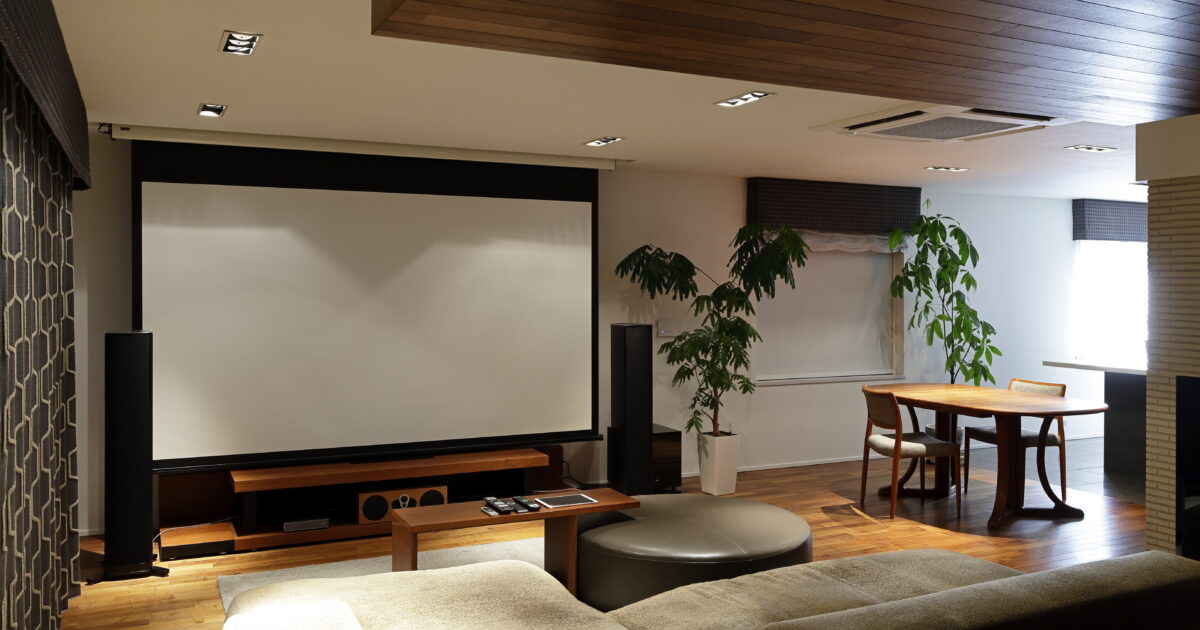 レコードもプロジェクターも… というシステムを、リビング+ダイニング+ベッドルーム共有スペースにまとめた、贅沢な空間でお楽しみになるユーザー様のご紹介です。