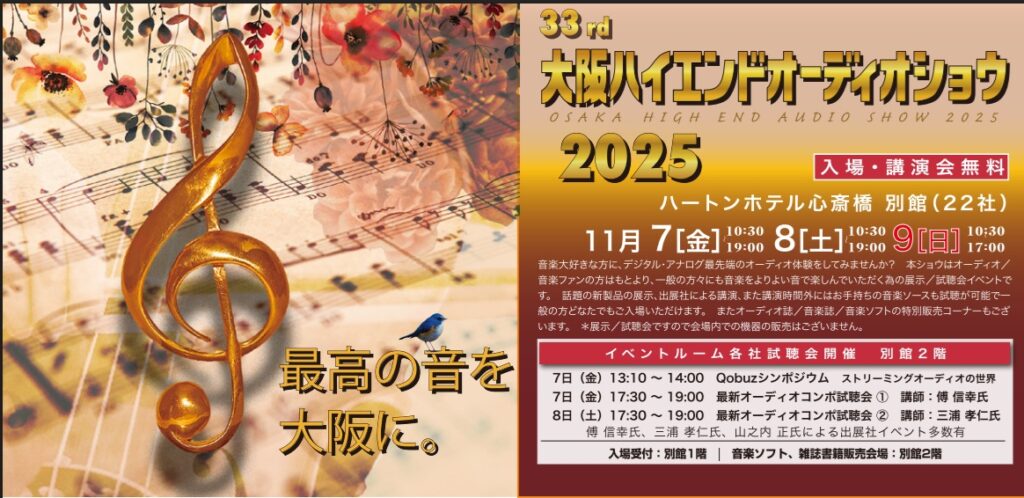 第33回「大阪ハイエンドオーディオショウ2025」出展致します。