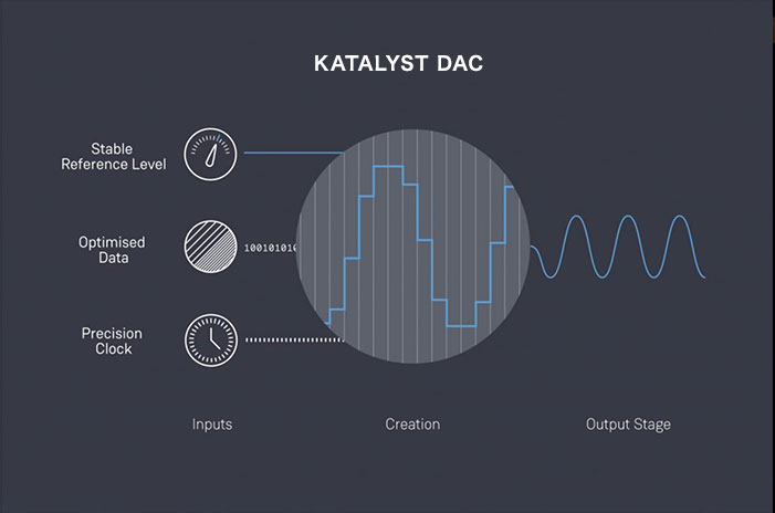 カタリストDACアーキテクチャーは、デジタル信号を高精度かつ繊細にアナログ変換するDACシステム。信頼性高く優秀なサードパーティ製チップを採用し、その精度を高める革新的なノウハウを注入。最大限のパフォーマンスを引き出しています。