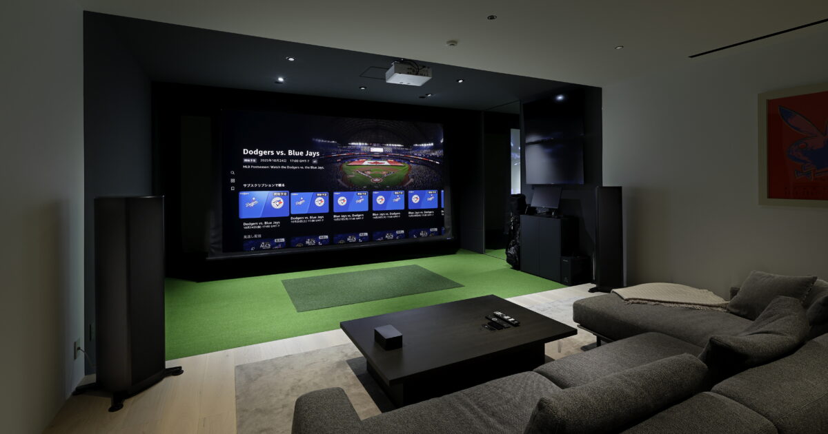 ゴルフシュミレーターに併設されたハイクオリティシアター。ご家族揃ってメジャーリーグを大迫力で楽しむことも、アクション映画でドキドキすることも、ここでならお手のものです。