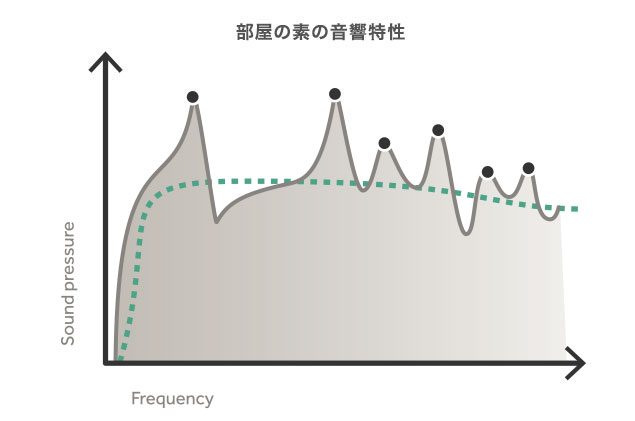 部屋の壁、天井、床に反射する音の波は、特定の周波数でピークを発生させますが、その素材(コンクリート、ボード、フローリング等)により音響エネルギーの反射量や周波数分布が異なります。スペース・オプティマイゼーションは、LINNサーバ上で行われる膨大な計算によりその音響特性を精密に算出し、そのピークを必要最小限だけ摘み取ります。